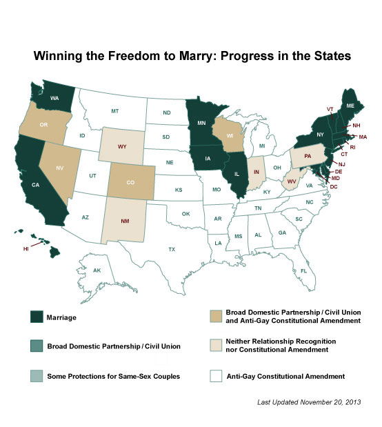 December 17,2013:  A little more than a year ago, lesbians and gays in Washington state, where I live, began to be able to marry. Now word comes that roughly one out of every six Washington marriages since that time are between men or women of the same sex.  The most recent info from the state Health Department actually only covers ten months from last December until this past September. In  that time 7,071 same-sex couples legally married.